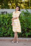 Embrace the vibrancy of summer with our captivating yellow and white hues, elegantly combined in a mesmerizing tie-dye pattern. The dress is crafted from premium Rayon Cotton, guaranteeing a soft and breathable feel against your skin.